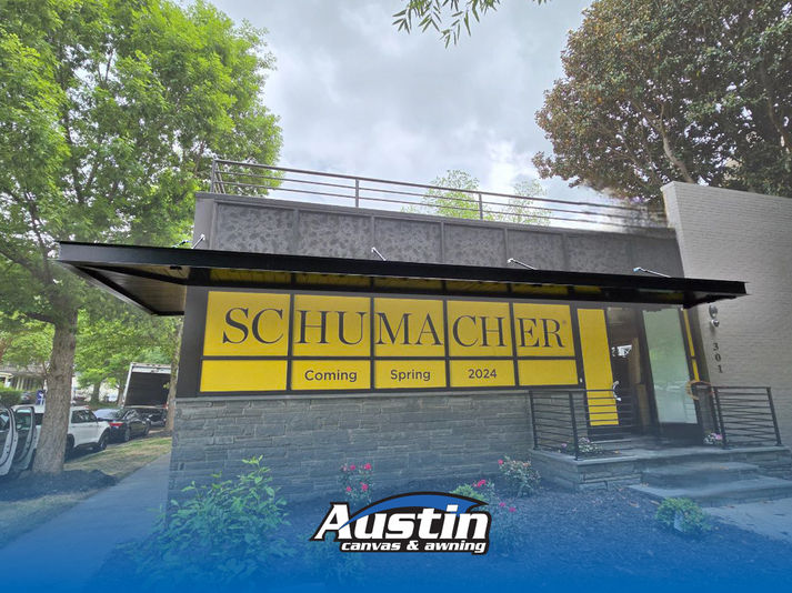 Austin Canvas & Awning completed a custom Aluma Shield® Hanger Rod canopy installation for Taylor Capital. One canopy features a sleek mitered design, wrapping around the building, while the other offers practical coverage at the back. Stay tuned for more updates on our exciting projects!